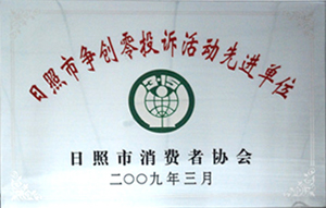 ·2009年,被評為日照市爭創(chuàng)零投訴活動先進單位
