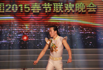 《星光大道》年度六強(qiáng)、被譽(yù)為“舞臺(tái)開心果”的陸海濤登場獻(xiàn)唱自己的新歌《好媳婦》,原汁原味的東北風(fēng)味唱腔幽默風(fēng)趣,引爆現(xiàn)場氣氛,他還親切地與觀眾互動(dòng),快速切換模仿模式,分別用楊坤、趙本山、劉歡、騰格爾、殷秀梅的聲腔表演歌曲《無所謂》,惟妙惟肖,博得現(xiàn)場一陣陣掌聲;集團(tuán)春晚常青樹——興業(yè)社區(qū)文體活動(dòng)俱樂部的中老年朋友們精心編排了舞蹈《幸福如意》,舞出了6萬業(yè)主“住在興業(yè),一起幸福”的心聲;大型人屏互動(dòng)節(jié)目《我是興業(yè)小蘋果》,將臺(tái)上、臺(tái)下融為一體,整個(gè)演播大廳變?yōu)闅g樂舞動(dòng)的海洋;歌伴舞《愿得一人心》浪漫纏綿,表達(dá)了祝福天下有情人終成眷屬的美好心愿;2008年曾作為特邀演員參演興業(yè)春晚的雜技演員周天,再次登臺(tái)帶來全新雜技表演《抖空竹》,他技藝超群,令人目不暇接,引得現(xiàn)場觀眾一陣陣驚呼贊嘆。
