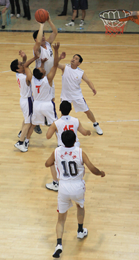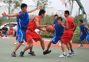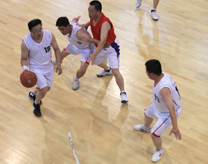 在比賽過程中各支代表隊都發(fā)揮出了極高的水平,為觀眾奉獻了一場場精彩的比賽。尤其在9月20日上午的交叉賽中,興業(yè)汽配代表隊與天泰鋼結構代表隊勢均力敵,比賽中雙方比分交替上升,離結束還有不到20秒時,汽配代表隊61:58領先3分并持有球權,此時汽配隊員的心理感覺穩(wěn)操勝券,一個不經(jīng)意的走步把球權送給對手,離結束不到2秒,鋼構中鋒馬沖順勢強攻,一記精準的3分遠投, 將比分追成61平,使比賽拖進加時。在加時賽中,汽配中鋒崔冰連續(xù)中投得手,興業(yè)汽配代表隊最終以73:65的比分完勝鋼構,躋身本屆籃球比賽的冠、亞軍決賽。因為天氣原因,9月20日下午的半決賽、決賽和驥翼組籃球表演賽改在日照一中室內(nèi)籃球場舉行。半決賽、決賽異常激烈,特別是在興發(fā)和汽配之間進行的決賽,展示了興業(yè)集團籃球的實力和水平,興發(fā)隊員們一次次嫻熟的配合,一個個精彩的扣籃,不時獲得現(xiàn)場觀眾的陣陣喝彩和掌聲。集團驥翼隊與興發(fā)驥翼隊的籃球表演賽同樣上演了群雄大戰(zhàn),集團驥翼隊在王建國總經(jīng)理帶領下,抗拒了體力不足,堅持打滿全場,最終以44:44的比分和興發(fā)驥翼隊握手言和(因?qū)俦硌葙惒辉偌訒r),也宣告興業(yè)集團第五屆職工運動會籃球比賽鳴金收兵。
