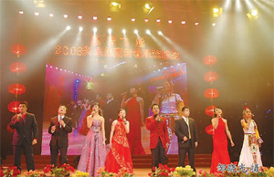 is gotta be you》展現(xiàn)了興業(yè)年輕一代的青春風采。魔術《劍懸少女》為晚會制造了緊張氣氛,我們的心真的懸了起來。專題片《來自墨西哥的祝!穾Ыo了我們奮斗在異國他鄉(xiāng)的同事們的真誠祝福,現(xiàn)場塵土飛揚,機器轟鳴,而他們卻在無怨無悔的奉獻著,我們用熱烈的掌聲向他們表示了超高的敬意。《卡門狂想》跳出了興業(yè)人的熱情與奔放。吉他彈唱《一封家書》唱出了遠離家鄉(xiāng)、遠離父母、奮斗在興業(yè)各條戰(zhàn)線上的兒女們思家和感恩父母的情懷。舞蹈《軍中姐妹》展現(xiàn)了房產(chǎn)銷售一線的姑娘們的志氣與豪邁。舞蹈《康定情歌》那快節(jié)奏的舞姿淋漓盡致的散發(fā)出了興業(yè)人精神抖擻、昂首前進的精神風貌。歌舞《龍船調》給我們講述了一個少數(shù)民族愛情故事。三句半《說唱興業(yè)》那搖頭晃腦、詼諧的說唱風格逗的觀眾捧腹大笑。獨唱《遇上你是我的緣》用優(yōu)美的歌聲唱出了在興業(yè)工作的同仁們惜緣、惜福、惜興業(yè)的感情。由興業(yè)投資建校培育出的小精靈們?yōu)槲覀儙淼摹垛弮喉懚.敗,讓我們夢回童年。舞蹈《世紀春雨》的舞者都是年過半百的阿姨,她們用心靈跳出了對美好生活的贊美。獨唱《愛我中華》為整臺晚會獻上了一道專業(yè)的精美大餐。接著雜技《滑稽球》將整臺晚會帶到了最高潮,藝術家周天那搞笑的面孔、詼諧的表演手段,讓所有的觀眾都唏噓不已、掌聲不斷......整臺晚會歷時兩個多小時,節(jié)目品種齊全,高潮接連不斷,晚會氣氛熱烈、節(jié)目檔次質量高、觀眾激情高漲,,一曲《激情飛越》帶動了所有的演員及集團領導班子一同上臺同聲歌唱,最后晚會在悠 揚的歌聲中落下帷幕......
