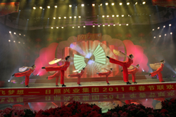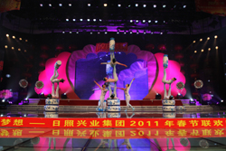 唱豐收慶新春歌舞盛世,展宏圖興大業(yè)放飛夢想。1月23日晚,“放飛夢想”日照興業(yè)集團(tuán)2011年春節(jié)聯(lián)歡晚會(huì)在日照廣播電視臺(tái)千米演播大廳盛裝上演。日照興業(yè)集團(tuán)領(lǐng)導(dǎo)班子和來自興業(yè)各條戰(zhàn)線上的職工代表500余人歡聚一堂,載歌載舞,共享勝利的喜悅,歡慶新春佳節(jié)的到來。日照市金融界各大銀行行長、新聞媒體、業(yè)務(wù)合作伙伴的領(lǐng)導(dǎo)和嘉賓應(yīng)邀觀賞了晚會(huì)。