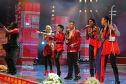 晚會(huì)的第三篇章在五洲唱響樂團(tuán)的歌聲中唱響,一首《We are The World》,激情四溢,來自世界五大洲的六名優(yōu)秀歌手載歌載舞,震撼全場,在觀眾們熱烈的歡呼聲中,他們又演唱了《你我是一家》、《唱響五洲》兩首大家耳熟能詳?shù)母枨,場下歡呼雷動(dòng),掌聲澎湃,引爆全場激情!稓g天喜地》是興業(yè)社區(qū)的中老年朋友們自編自演的舞蹈, 形式歡快喜慶,節(jié)奏緊湊利落,加上配合演員們嫻熟的舞步,充分展現(xiàn)了中老年人的良好精神風(fēng)貌和藝術(shù)才華!懊慷淅嘶ㄒ粯优炫,每個(gè)夢想都值得灌溉,眼淚變成雨水,就能落下來,每個(gè)孩子都應(yīng)該被寵愛!边@是來自興業(yè)希望小學(xué)的20多名小學(xué)生代表用真情演繹的公益歌曲《最好的未來》,他們純真的童音唱出無比質(zhì)樸的情感,令全場觀眾唏噓動(dòng)容,對孩子們的表演報(bào)以熱烈地掌聲。“春雨滋潤心靈,春風(fēng)吹暖心扉,興業(yè)的春天最美;春色為我們添彩,春光為我們增輝,興業(yè)人的笑容最美;山一樣的氣魄,海一樣的魂,春天里走來了興業(yè)人!边@首《興業(yè)春天》是歌唱興業(yè)人自己的歌曲,自2010年在興業(yè)集團(tuán)春晚推出以來,已在興業(yè)人中間廣為傳唱。當(dāng)這熟悉的旋律再次響起時(shí),全場觀眾不禁心潮澎湃,撫今追昔,激起無限情思。配樂詩朗誦《興業(yè)情懷》從一個(gè)男孩和媽媽的對話配以鷗鳴和海浪交織的樂章中緩緩拉開,三名領(lǐng)誦人用淳樸真摯的語言抒發(fā)對興業(yè)的無限熱愛,40多名職工組成的合誦時(shí)而深沉、時(shí)而高亢;時(shí)而溫情、時(shí)而激昂,深情謳歌一代興業(yè)人艱苦創(chuàng)業(yè)、傾情公益、興業(yè)報(bào)國的高尚情懷,令觀眾們心潮澎湃,感慨萬千,更激發(fā)了大家放飛夢想,開創(chuàng)美好未來的激情和斗志!俺綁粝胍黄痫w,你我需要真心面對,讓生命回味這一刻,讓歲月銘記這一回。”由裴玉、王蓬等六名青年職工演唱的《超越夢想》,充滿激情,充滿力量,也為晚會(huì)劃上了一個(gè)圓滿的句號。