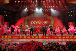 “放飛夢想”興業(yè)集團(tuán)2011年春節(jié)聯(lián)歡晚會(huì)歷時(shí)2個(gè)多小時(shí),節(jié)目形式包括小品、歌舞、雜技、黃梅戲、二人轉(zhuǎn)、器樂合奏、詩歌朗誦等,內(nèi)容豐富,精彩紛呈;特別是五洲唱響樂團(tuán)、東方辣妹的加盟,使演員陣容更加強(qiáng)大;借助千米演播大廳極具現(xiàn)代化的舞美燈光效果驚艷四座,充分展示了興業(yè)集團(tuán)的企業(yè)實(shí)力,謳歌了興業(yè)人艱苦奮斗、團(tuán)結(jié)協(xié)作、拼搏進(jìn)取的創(chuàng)業(yè)精神和興業(yè)報(bào)國的高尚情懷,也為港城人民獻(xiàn)上了一場華麗的文化盛宴。