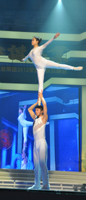 STAR》,引起全場雷動(dòng)歡呼;同德礦業(yè)公司選送的雜技《肩上芭蕾》驚險(xiǎn)刺激,來自北京雜技團(tuán)的年輕演員們?cè)谕榧绨蛏线~起輕盈的舞步,場下觀眾驚呼不已,拍手叫絕;臨汾志強(qiáng)鋼鐵公司的漢子們表演的威風(fēng)鑼鼓《堯天舜日》高亢激昂,令觀眾們心潮澎湃,更激發(fā)了大家開創(chuàng)美好未來的激情和斗志。