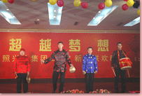 瑞犬凱歌辭舊歲,花豬起舞賀新年。2月6日晚,凱萊大酒店會展中心 內(nèi)歌聲悠揚、掌聲陣陣,“2007年日照興業(yè)集團迎春聯(lián)歡文藝晚會”正在這里舉行。集團領(lǐng)導丁杰、王建國、韓金軍、趙文強、申作華、李麗萱、李春賢以及集團機關(guān)、各分公司的標兵、先進工作者、職工代表近400人一起興致勃勃地觀看了演出。全國政協(xié)委員、民革中央畫院院長、國畫大師宋雨桂應邀出席了晚會。市內(nèi)各大銀行、日照日報、日照電視臺等單位的領(lǐng)導、記者、工作人員也觀看演出,歡聚一堂,共慶新年。